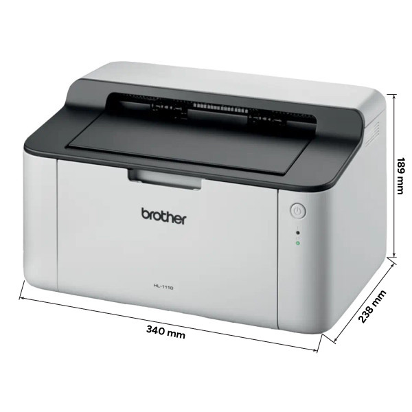 The Brother HL-1110 black and white laser printer is a very compact machine, suitable for places with limited space. This reliable printer prints up to 20 pages per minute and ensures excellent quality and a high print resolution (2400 x 600 dpi). The laser printer has a paper tray for 150 sheets and can be easily connected to your computer via hi-speed USB 2.0.